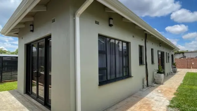 R. E. D Property- Family home with the possibility to commercial rights sitting on approximately 800square meters, the property comprises of a cottage, domestic quarters, double carports, swimming pool, overhead covered terrace, a lush garden with a paved drive way and a prolific borehole with a pump and motor. Main house comprises of 2 double bedrooms, 2 bathrooms, open plan lounge and dining room area with a bar, a second lounge which is open plan to a fitted kitchen boasting a scullery, pantry, double oven and hob. This home is complete with a security alarm with sensors and a siren fitted in the 4 sides of the garden/house. Premises is walled with an electric gated. Contact us today for more information.
